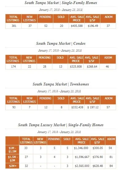 South Tampa Real Estate Market Report | January 17, 2018 - January 23, 2018